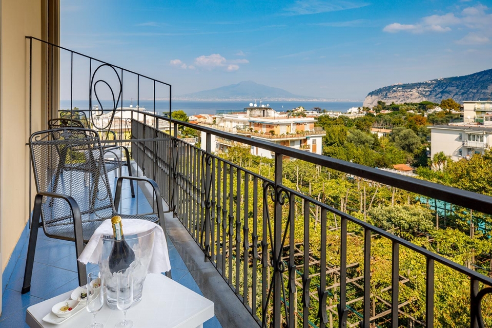 Questa tipologia di camera è confortevole, elegante e ricercata nell’arredamento con mobili in stile fiorentino, lampadario di murano, il bagno con vasca o doccia. Tutte le camere di questa tipologia si trovano al quarto o quinto piano della struttura e hanno il balcone con vista sul Golfo di Napoli, arredate con tavolo e sedie dove ci si può rilassare. Può essere preparata sia con letto matrimoniale sia con 2 letti separati secondo la richiesta dei nostri ospiti.