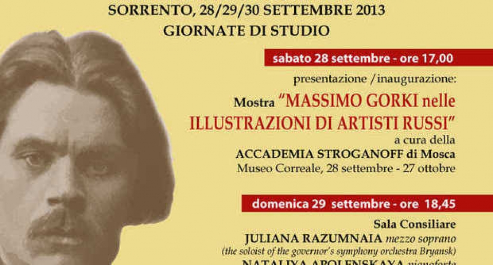 «Massimo Gorkij. Itinerario culturale russo nel contesto degli itinerari culturali Europei 2013»: è il titolo dell'iniziativa promossa dal Comune di Sorrento che si articolerà in tre momenti,con una mostra, un concerto e un convegno di studi in programma in varie location cittadine.