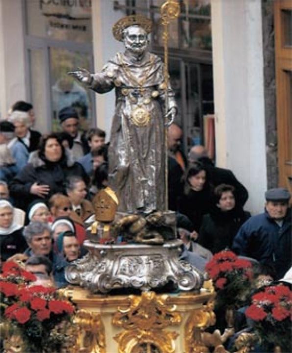 La mattina del 14 febbraio è la volta della suggestiva processione lungo le strade del centro, della statua d'argento raffigurante il Santo. Dopo il corteo la statua fa rientro nella Basilica, dove viene celebrata la Santa Messa.